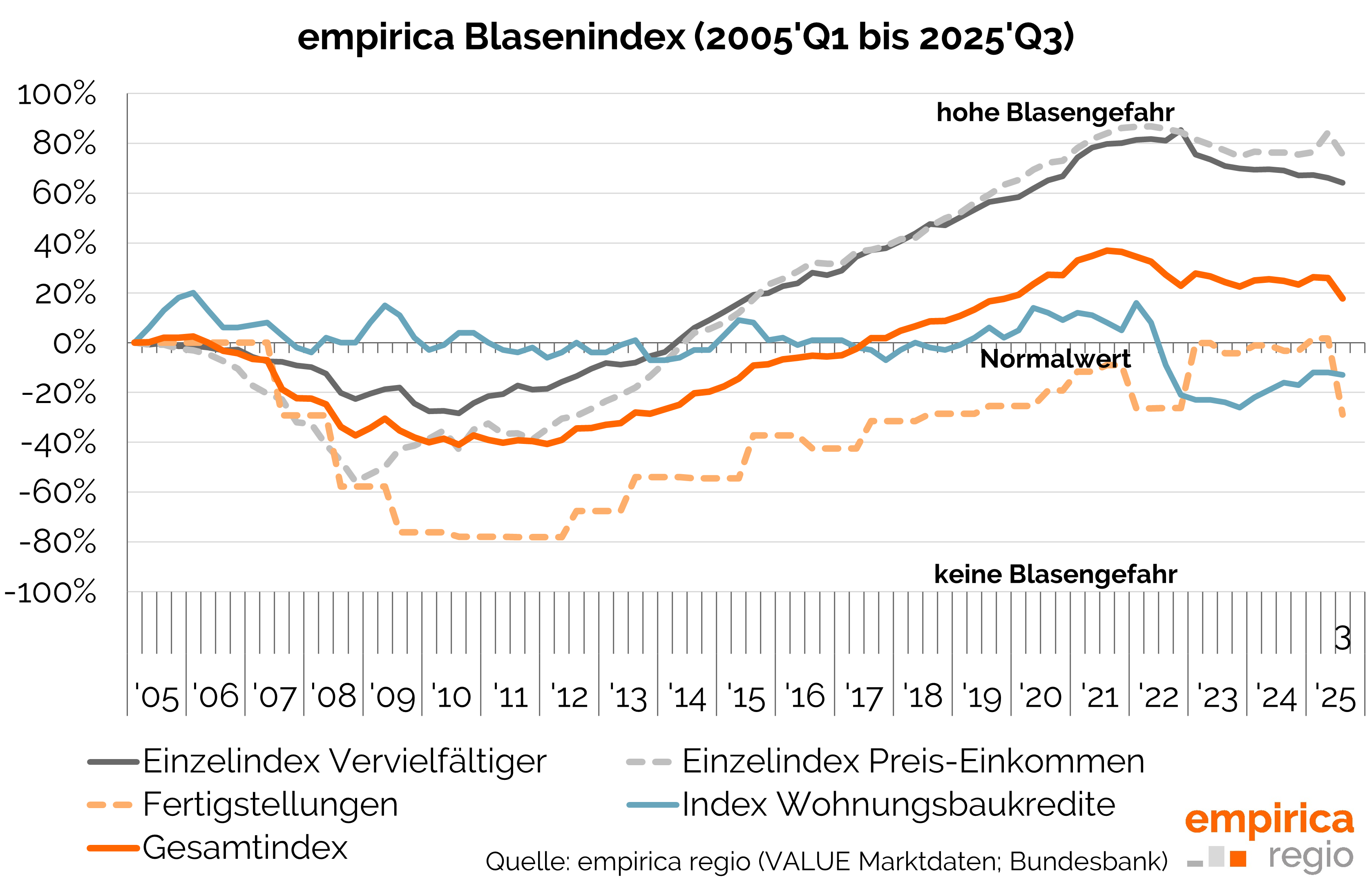 Blasenindex Q3/2025: Risiko einer Immobilienblase sinkt